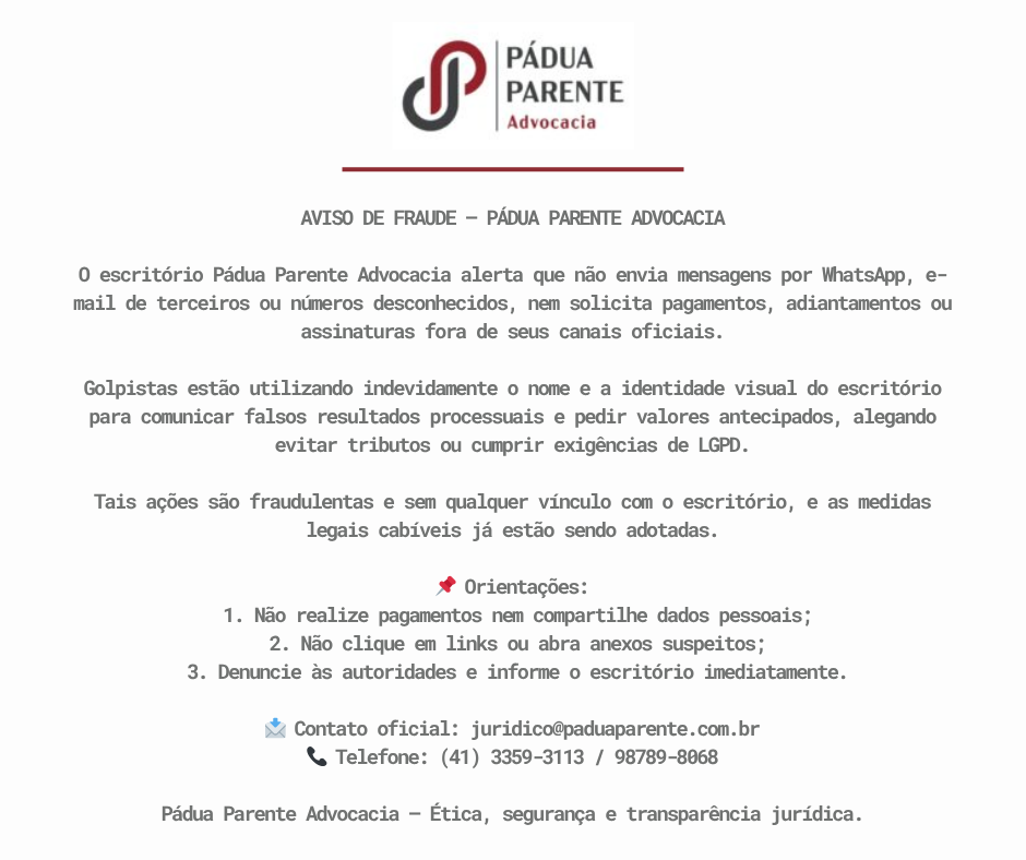 Nosso fundador, Antonio de Pádua Parente Filho, traz mais de 33 anos de experiência no universo jurídico, atuando junto a instituições financeiras, multinacionais, indústrias e organizações do terceiro setor. Desde 2017, lidera o escritório com uma visão clara: simplificar processos, destravar negócios e impulsionar resultados, sempre dentro dos mais altos padrões legais e de compliance.